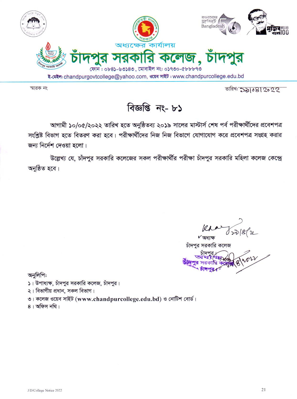 মাস্টার্স শেষপর্ব পরীক্ষার্থীদের প্রবেশ পত্র বিতরণ সংক্রান্ত বিজ্ঞপ্তি mf.jpg157.4 KB Download 55 Version File Count 1 Create Date 19 April, 2022 Last Updated 19 April, 2022 CGC Admin2022-04-19T12:04:42+06:00 Share On Social Media! FacebookXLinkedInWhatsAppPinterestEmail