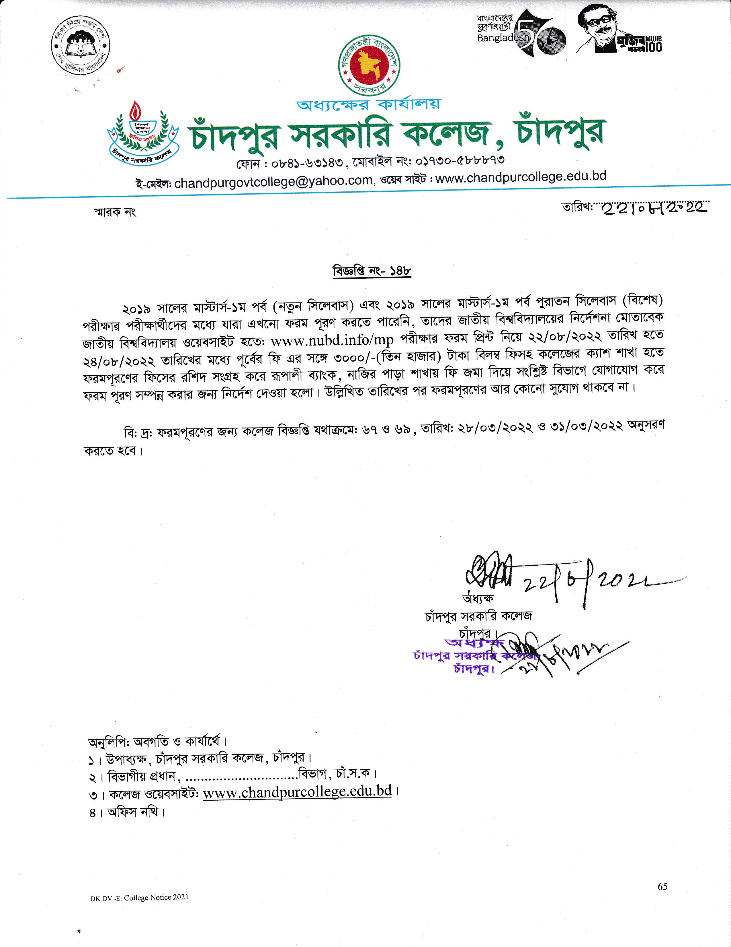 ২০১৯ সালের মাস্টার্স ১ম পর্ব নতুন ও পুরাতন পরীক্ষার্থীদের বিলম্বফিসহ ফরমপূরণের সময় বৃদ্ধি সংক্রান্ত বিজ্ঞপ্তি Notice.jpg675.43 KB Download 65 Version File Count 1 Create Date 22 August, 2022 Last Updated 23 August, 2022 CGC Admin2022-08-22T22:08:34+06:00 Share On Social Media! FacebookXLinkedInWhatsAppPinterestEmail