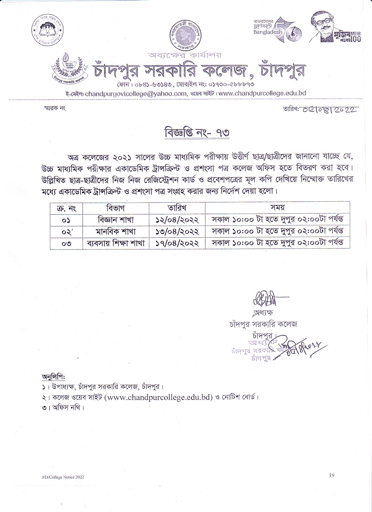 ২০২১ সালের উচ্চমাধ্যমিক পরীক্ষায় উত্তীর্ণ শিক্ষার্থীদের একাডেমিক ট্রন্সক্রিপ্ট ও প্রশংসাপত্র বিতরণ সংক্রান্ত বিজ্ঞপ্তি nno.jpg245.59 KB Download 90 Version File Count 1 Create Date 5 April, 2022 Last Updated 5 April, 2022 CGC Admin2022-04-05T15:43:31+06:00 Share On Social Media! FacebookXLinkedInWhatsAppPinterestEmail