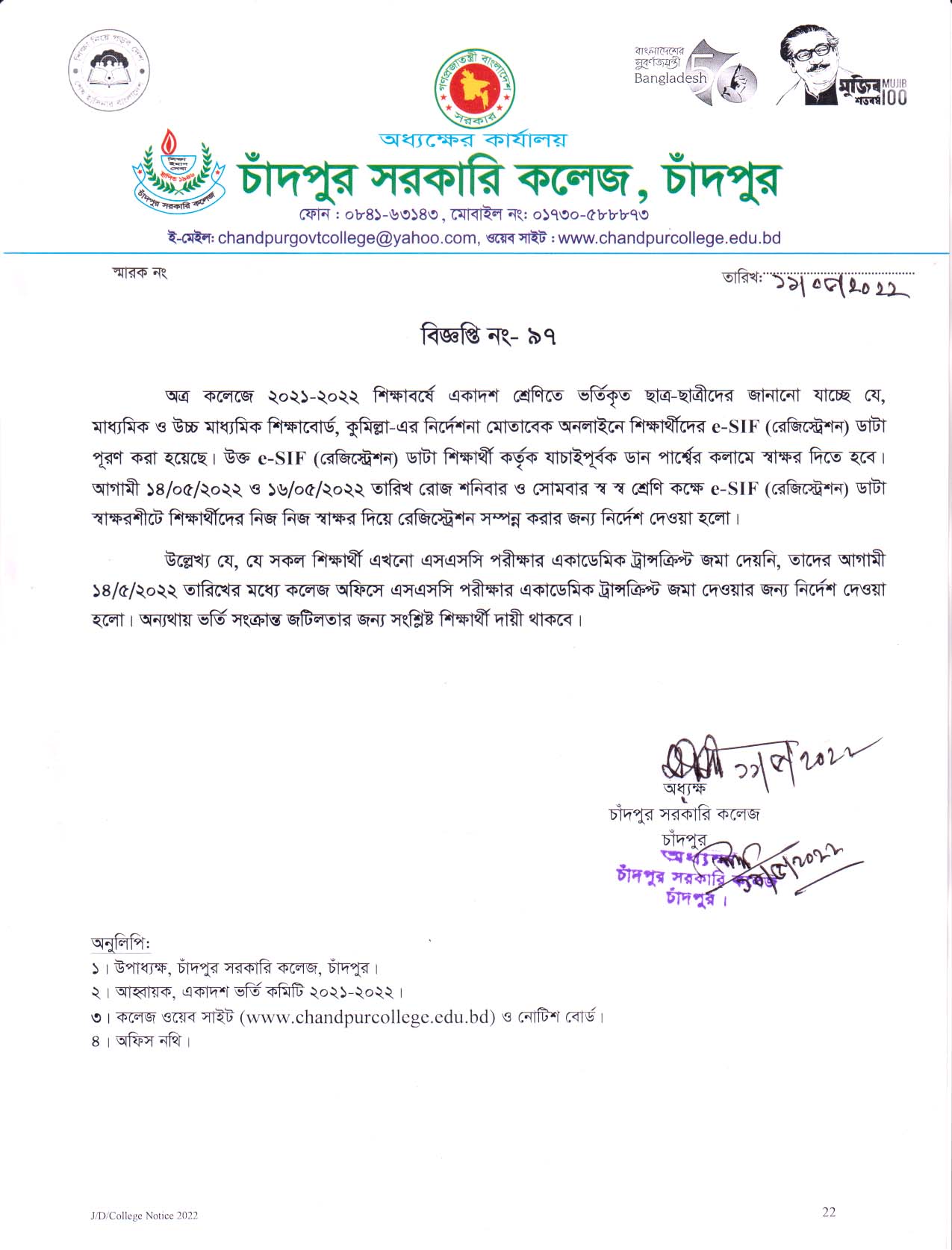 ২০২১-২০২২ শিক্ষাবর্ষে একাদশ শ্রেণিতে ভর্তিকৃত শিক্ষার্থীদের রেজিস্ট্রেশন সংক্রান্ত জরুরী বিজ্ঞপ্তি xi.jpg152.22 KB Download 61 Version File Count 1 Create Date 11 May, 2022 Last Updated 11 May, 2022 CGC Admin2022-05-11T15:32:09+06:00 Share On Social Media! FacebookXLinkedInWhatsAppPinterestEmail